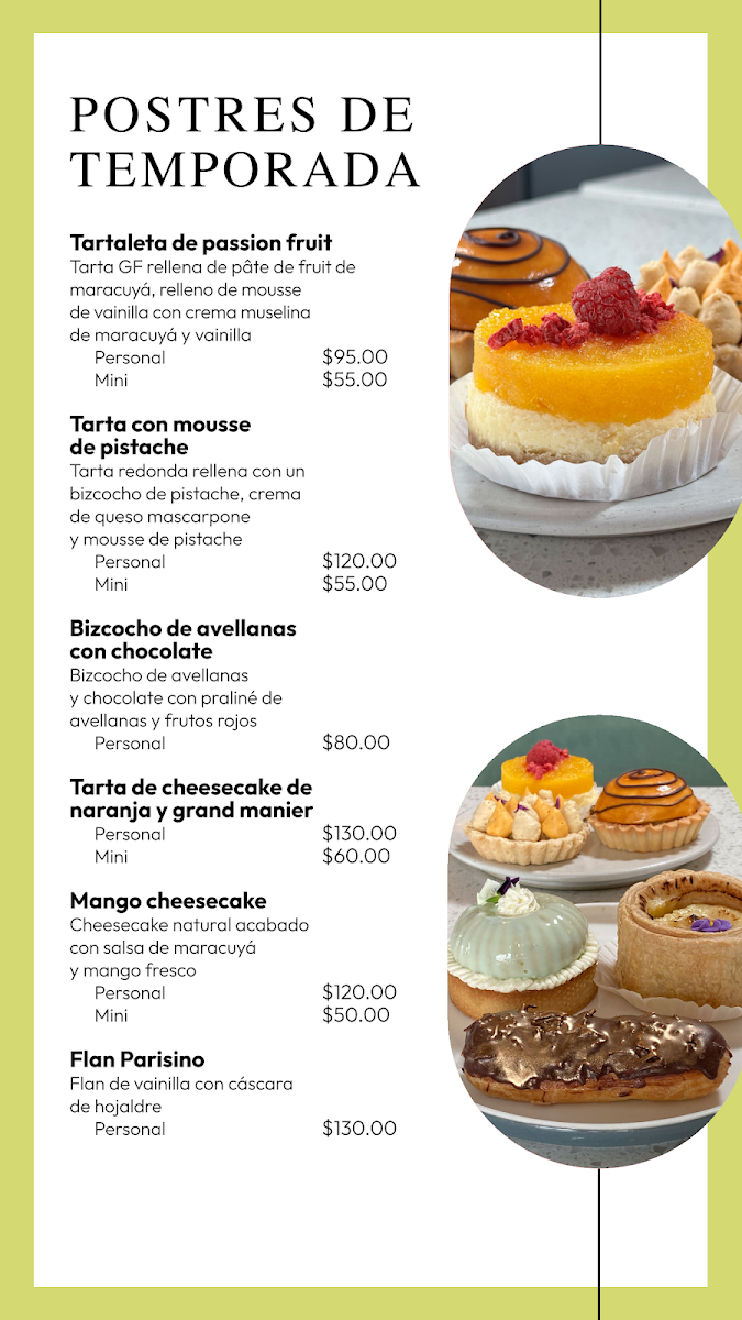 Welcome to Le Lieu Reposteria, a charming dessert haven located in the heart of Tijuana. This delightful bakery specializes in exquisite seasonal pastries and cakes that are sure to tantalize your taste buds. Among their standout offerings, the Tartaleta de passion fruit, featuring a luscious vanilla mousse and passion fruit cream, is simply divine at MX$95.00. For chocolate lovers, the Bizcocho de avellanas con chocolate combines rich hazelnut and chocolate with a crunchy praline finish, creating a perfect indulgence.